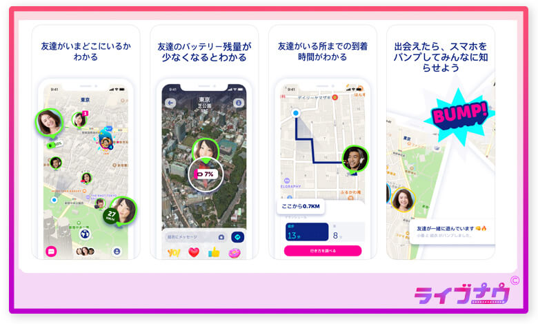 位置情報共有機能「Friends Map」によって、友達の位置が見れることにより友達を近くに感じることができます!